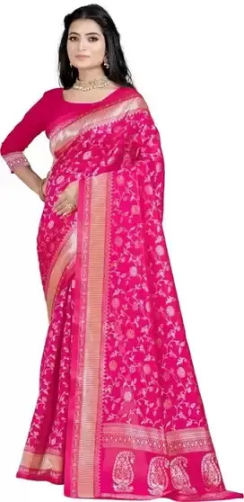 Name : Woven Kanjivaram Pure Silk Saree (Rani Pink)
