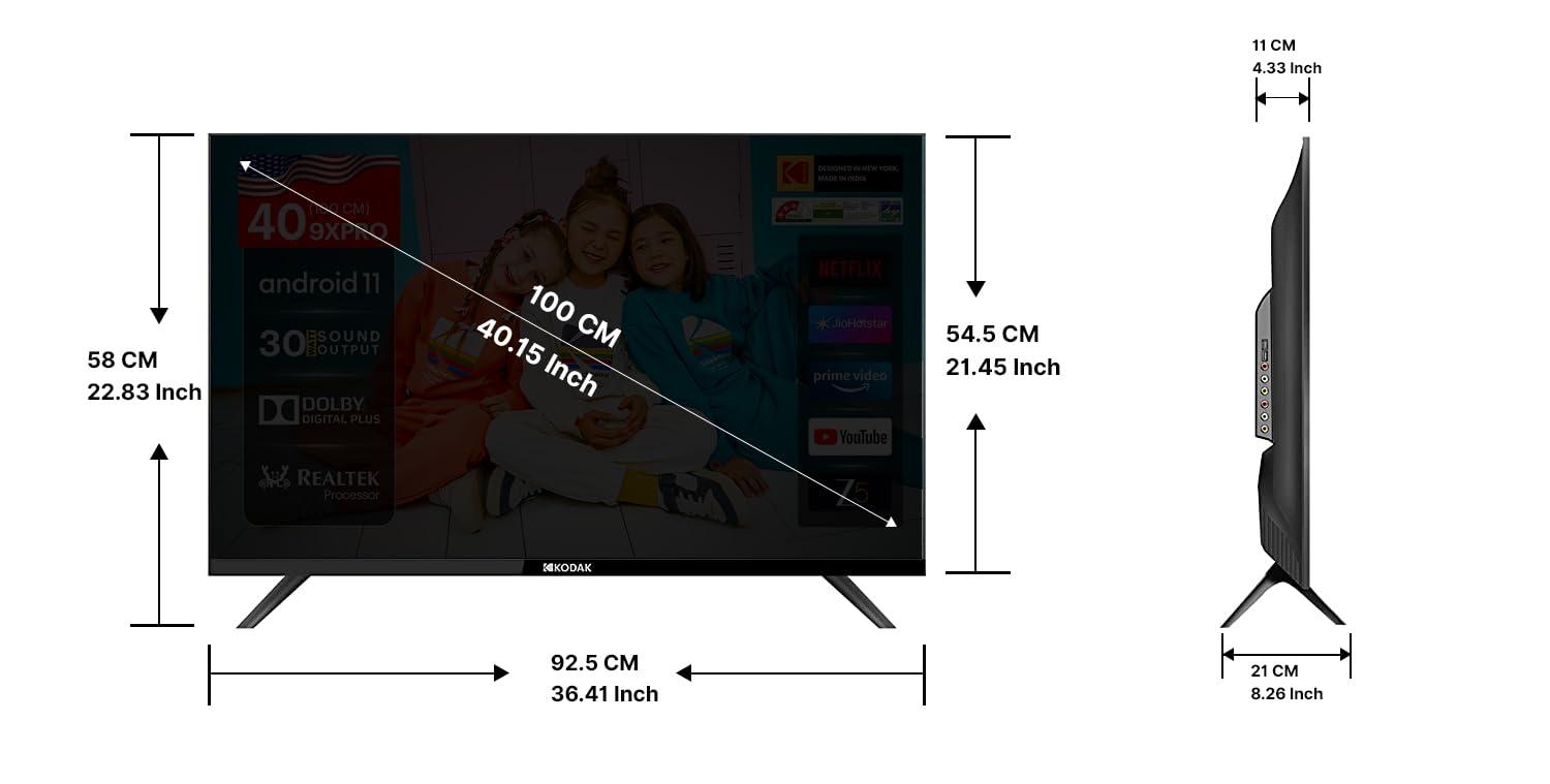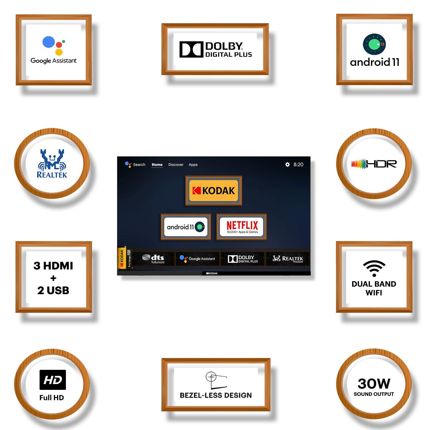 Smart TV Features: Android 11 OS | In-Built WiFi | Screen Mirroring | 1GB RAM | 8GB ROM | Supported Apps: Netflix, Prime Video, YouTube, Zee5, etc. | Google Assistant Operation | | Energy Rating: 3 Star | Annual Energy Consumption: 48 kWh