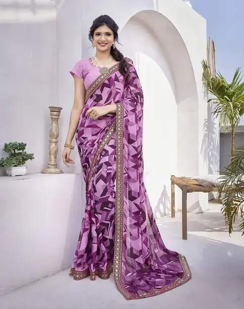 Other Details :Divastri Women's Trendy Printed Jacquard Lace Georgette Saree with Blouse Material