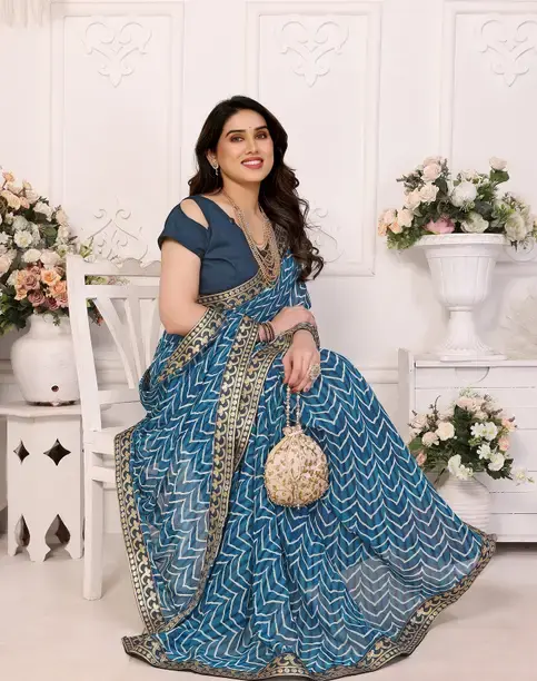 Other Details :Yashika Women's Printed Georgette Printed Saree With Lace Border and Blouse Material