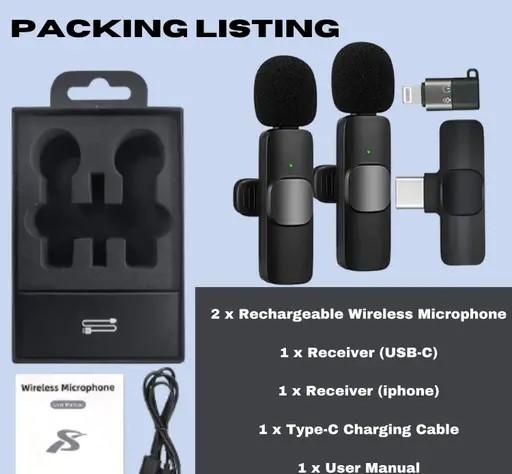PLEASE CHARGE MICROPHONE ALWAYS BEFORE USE , 2 Wireless Microphones and 1 Receiver : wireless microphone system includes 2 clip on microphones and 1 receiver. It can record two sound sources simultaneously. Also you can use one lapel mic alone. Real Time Auto Sync: Using real-time auto-sync technology, which extremely reduce the video post-editing. Support Multi-Channel Real-Time Mixing, it can synchronize the background music for phone and human voice in real time, microphone can provide more than 10 hours of continious use after being fully charged. Just Clip and go, no cables required - perfect for outdoor. Compatible device: Plug and play no APP is needed- the innovative Lavalier Microphone is different from others, which includes transmitter and receiver, they will automatically connect, so APP and Bluetooth are not required. Just plug the transmitter into the device to play directly, and compatible with all mobile phones on the market. Super performance: Provide professional full-band audio 44.1~48kHz stereo CD sound quality, more than 6 times the frequency of conventional mono microphones. Built-in DSP single microphone noisiness reduction. Stable operation: 20 Meters Barrier-Free Connection ,360° panoramic sound collection, high-denscty anti-spray sponge and high-sensitivity microphone.