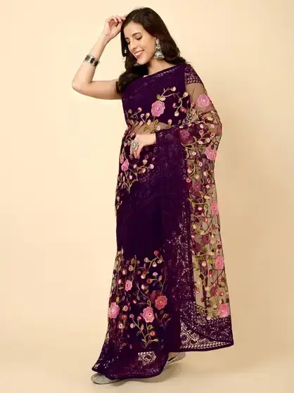 Pattern : Embroidered Pack of : 1 Occasion : Party & Festive, Wedding Fabric Care : Hand Wash Fabric : Net Type : Bollywood Blouse Piece : Unstitched Sari Style : Regular Sari Net Quantity : 1