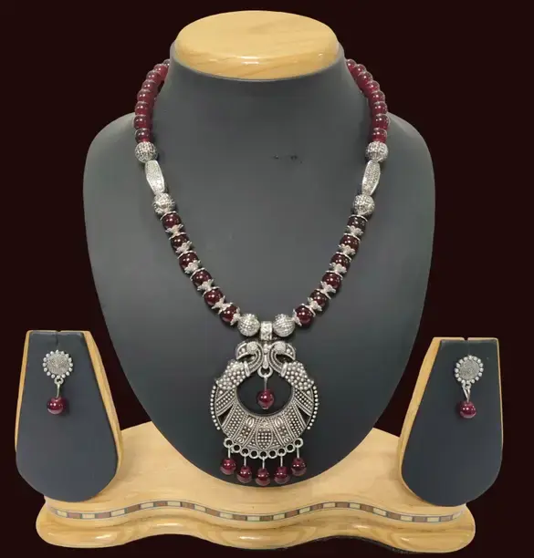 Brand :Geesa Base Material :Oxidised Silver Color :Maroon Type :Earring & Necklace Set Ideal For :Girls, Women Net Quantity :2 Brand Color :NA Sales Package :JEWELLERY SET Occasion :Everyday, Party, Love, Religious, Wedding & Engagement, Workwear