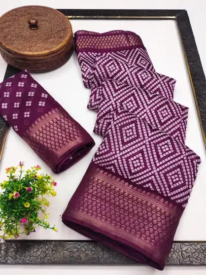 Name : Printed Bandhani Cotton Silk Saree (Wine)