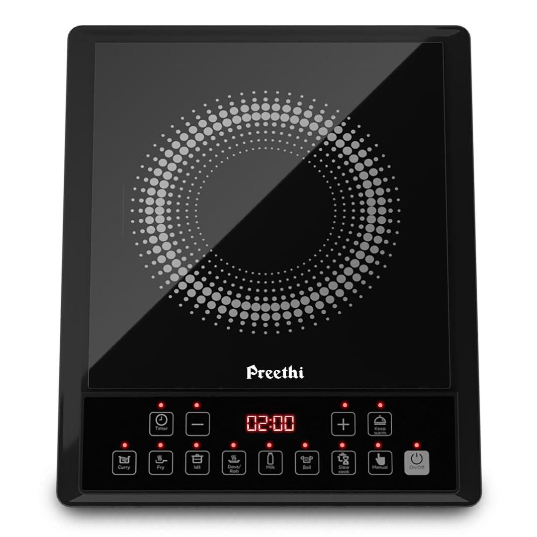 Preethi Indicook IC124 Induction Cooktop, 2100-Watt Electric Stove with Soft Touch Buttons and Crystal Glass (Black)