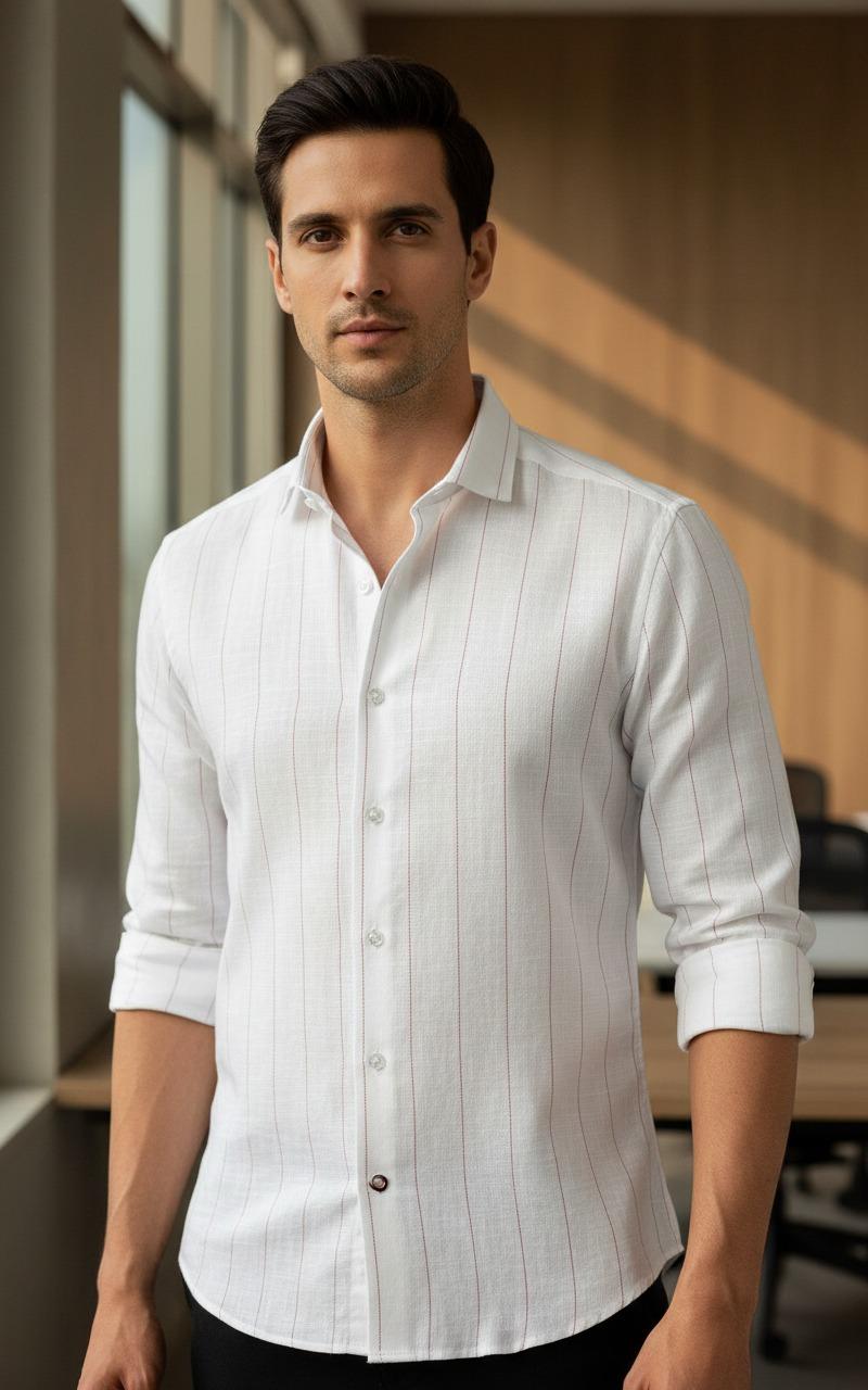 Slim Fit Striped Lining Cotton Full Sleeve Casual Shirts for Men
