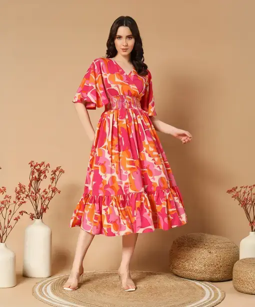 Other Details :Discover effortless elegance in our Printed Smoking Midi Dress. Crafted from premium materials, it offers luxurious comfort and durability. With delicate smoking detail and a flattering midi length, it's a timeless wardrobe essential, blending sophistication with versatility.