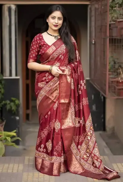 Digital Print, Printed Bollywood Dupion Silk, Cotton Silk Saree (maroon)