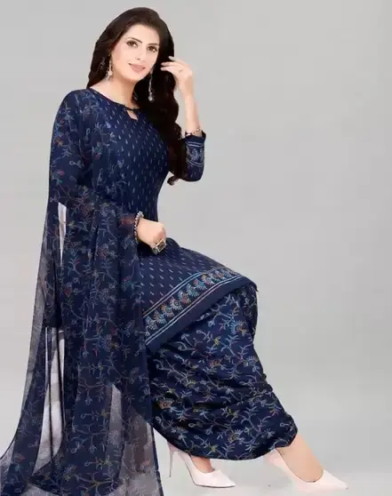 Crepe Printed, Polka Print, Floral Print Salwar Suit Material (Unstitched)
