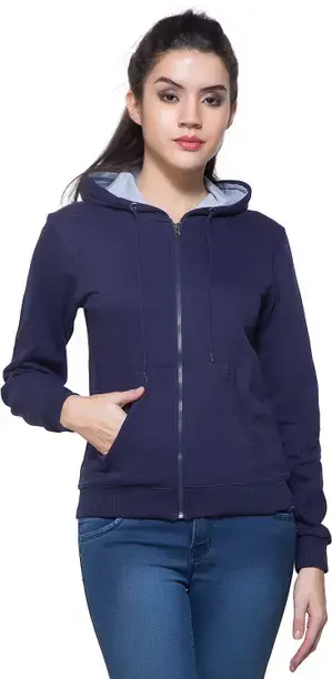 Women Full Sleeve Solid Hooded Sweatshirt